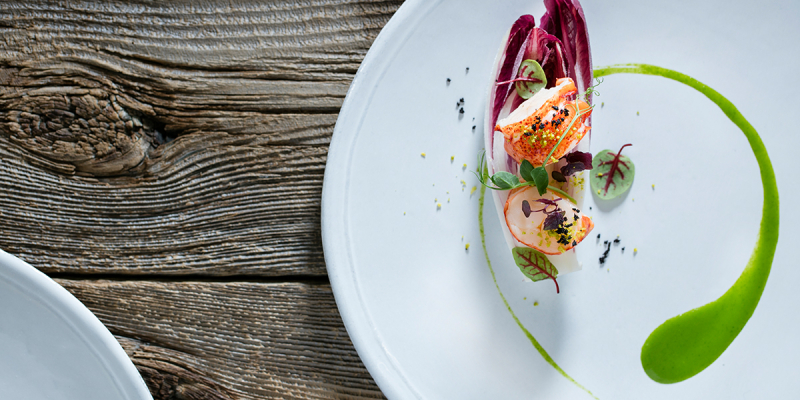 見た目にも美しい料理を、自然の温もりが感じられる邸宅でごゆっくり味わってください。